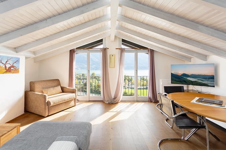 The well-maintained and tastefully furnished house offers three independent flats, all with a splendid panoramic view of the mountains and the lake, giving a feeling of peace and tranquillity.