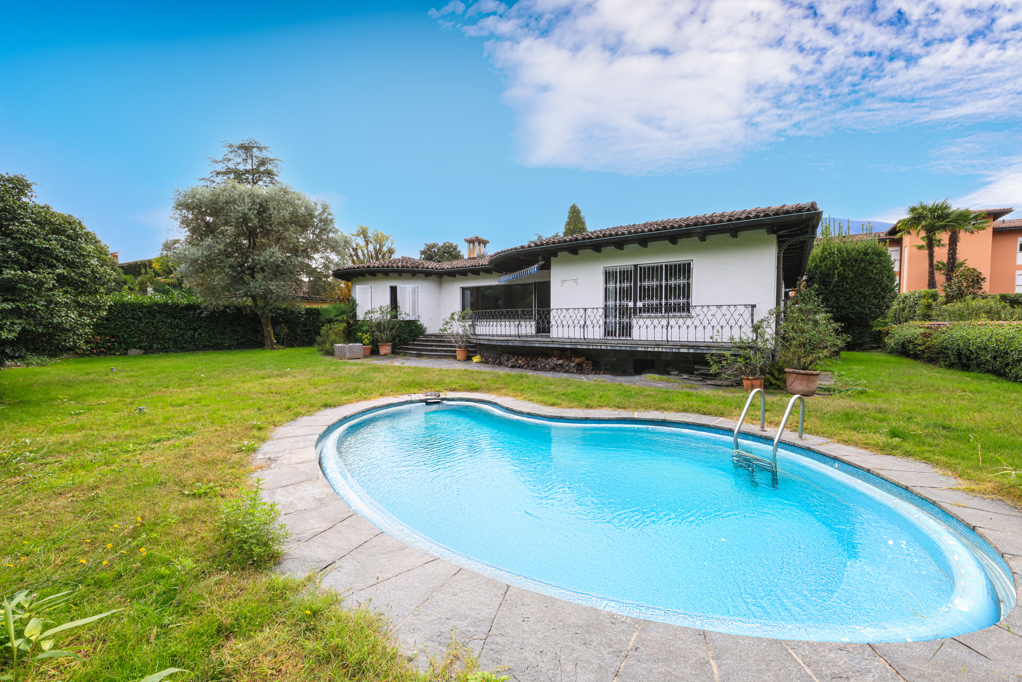 La villa, esposta completamente a sud, gode del sole per tutto il giorno e offre scorci incantevoli sul giardino avvolgente, un polmone di verde che permette una privacy assoluta. Ogni dettaglio architettonico e decorativo è stato curato con gusto mediterraneo: colori caldi, materiali naturali, portici, grandi finestre. Questa villa non è solo una casa: è un modo di vivere, un luogo dove il tempo rallenta e ogni dettaglio parla di cura, serenità e bellezza. Un rifugio raffinato per chi desidera vivere Ascona con stile e autenticità, circondato da luce, natura e silenzio.