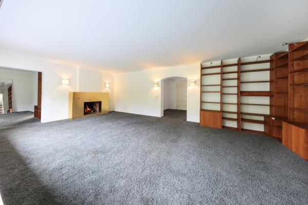 una sala living di rappresentanza, affacciata a sud, inondata di luce e con accesso diretto al giardino;